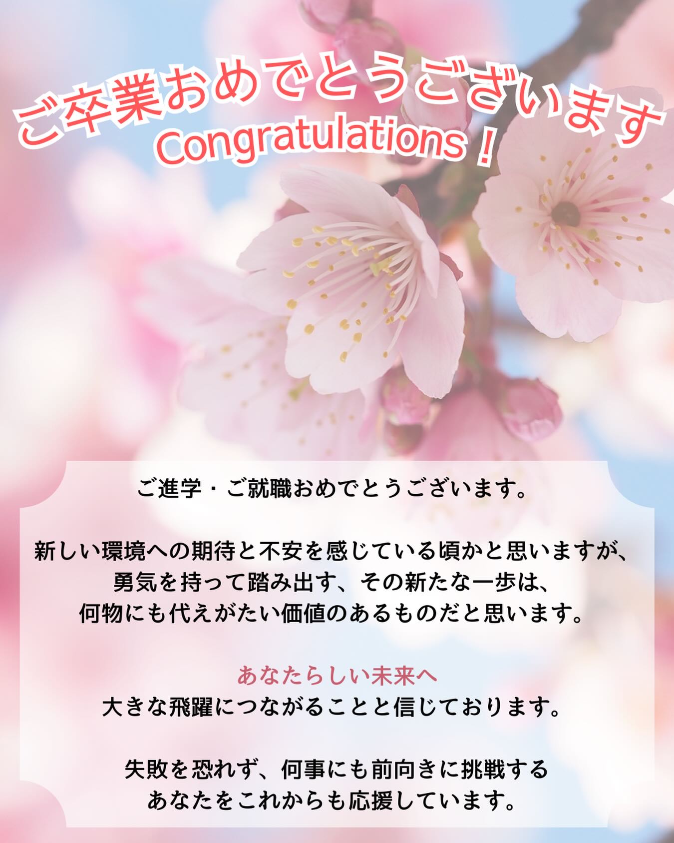 ご進学される皆様、ご就職される皆様、ご卒業おめでとうございます。